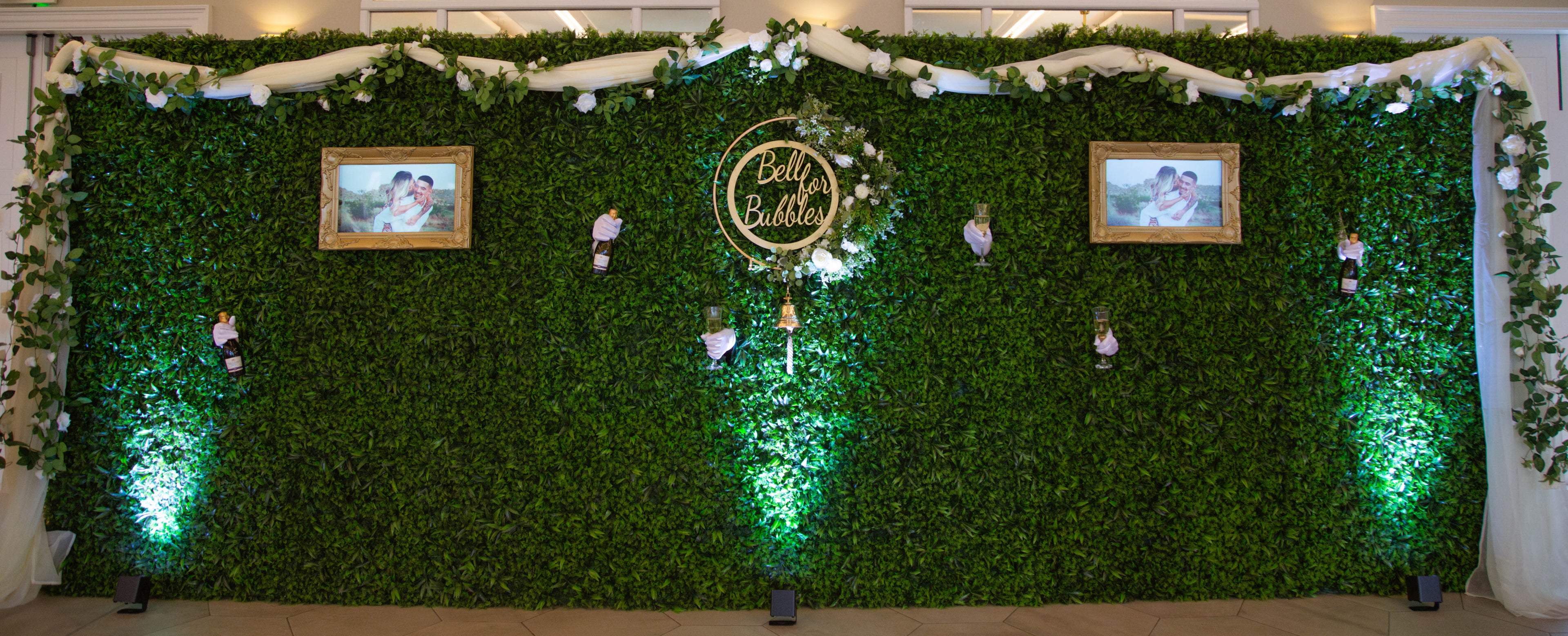 Make the Wall your own. From statement florals and foliage to video screens showing your story or custom signage, The Wall is a décor piece, photo backdrop and interactive talking point all in one.